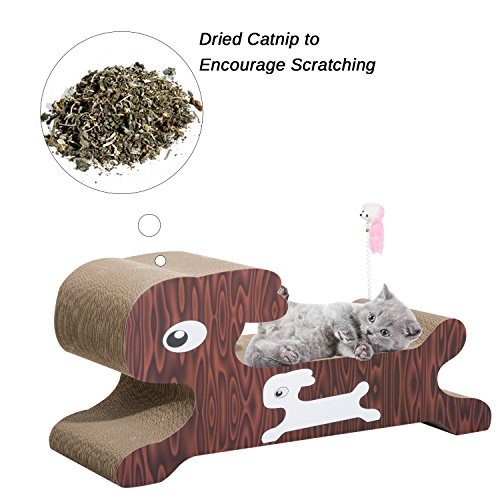 -. Feature : ✔ MULTI-FUNCTIONAL USE: Can be used by cats as a scratcher, a lounge, a toy, and much more! / ✔ THOUGHTFUL DESIGN: Cute rabbit shaped design can easily fit in with your home decor in style with a flat back which makes for easier scratching and a more comfortable place to rest and play. / ✔ HIGH-QUALITY: Made of non-toxic glue and high density safe corrugated cardboard which is not easily broken by a cat's sharp nails. The cellular design can stand high compression and is wear resistant as well to maintain its original shape. / ✔ BONUS BENEFITS: Multi-tier design allows for exercise, also satisfies a cat's natural urges to scratch and play. Save money and reclaim your couch at the same time! / ✔ ENTERTAINING: A spring tail with furry toy ball is included for even more fun while playing, your kitty will be having hours of fun with it!