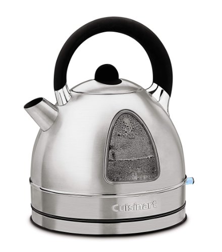 Made of classic stainless steel with a graceful stay-cool handle, the Cuisinart BPA-free Cordless Electric Kettle has a conveniently located extra large window, with water level marks, that shows whether water is boiling or kettle needs refilling. With a concealed heating element and easy one-touch operation, the cordless kettle provides fresh-tasting instant hot drinks anywhere, anytime.Feature