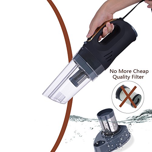 -. Feature : High Power Suction - 12V 120W vacuum best ideal tool to clean the dust, crumbs, pet hair, water and other small mess in the car. never worry about your children and pets playing in the car. / Eesy To Use : XYK car vacuum supports dry and wet application. 3 accessories (Long Mouth, Brush, Soft Long Tube) and led light, enable the cleaning easier and can clean every corner in your car. / Removeable & Washable Hepa Filter: which is detachable and easy to be cleaned. It will be more powerful if start the car first while use the car vacuum and the filter should be cleaned up every time of use. / Convenient To Use: 5.0M(197 inches) power cord helps clean any hard-to-reach area. Have a LED light, more convenient to use when clean dust. easy to keep either in the garage or in the back of your car. Easy to operate, just turn on/off the switch. / Good Service: Any question, please email us, we response you within 24 hours, and we will also provide you technical support. We offer ONE YEAR GUARANTEE,we will give you refund or send you replacement pcs if you not satisfied