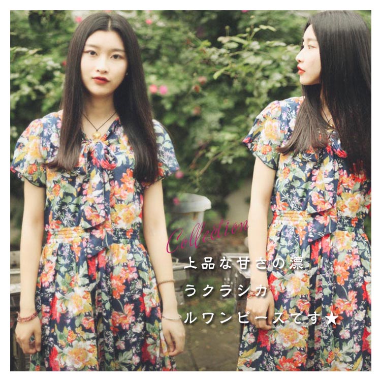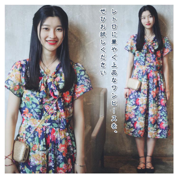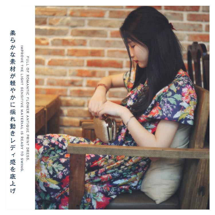 | ロマンティックなフラワーをプリントしたアンティーク感あふれるワンピース。 柔らかな素材が軽やかに揺れ動きレディ感を底上げ。レトロに華やぐ上品なワンピースを、ぜひお試しください。 | |