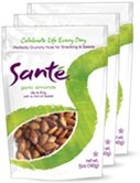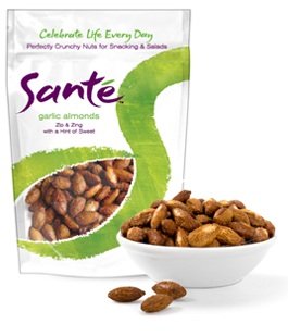 -. Feature : Pack of three 5 oz. packages, total of 15 oz. / Santé Garlic Almonds are perfect for snacking, pairing with a glass of wine or beer or topping salads. For ideas visit: www.santenuts.com / Made by hand in small batches in Santa Clara, CA with only the highest quality, all natural ingredients. / GLUTEN-FREE, Certified Kosher, All natural - always!!!!! / Zesty garlic, cayenne and black pepper give these almonds their savory punch. A touch of pure cane sugar makes them irresistible.