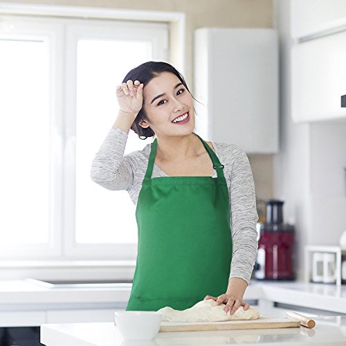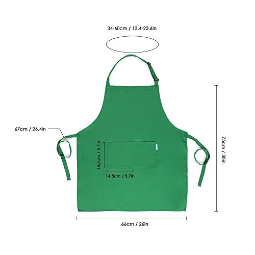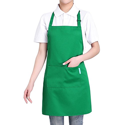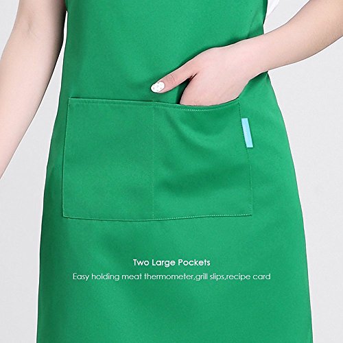 Two Pockets Adjustable Bib Adult Apron - Extra Long Ties - Heavy duty kitchen apron, Money apron, Waitresses apron - Cooking Kitchen Aprons for Women (Green, 29.5" x 24.5")