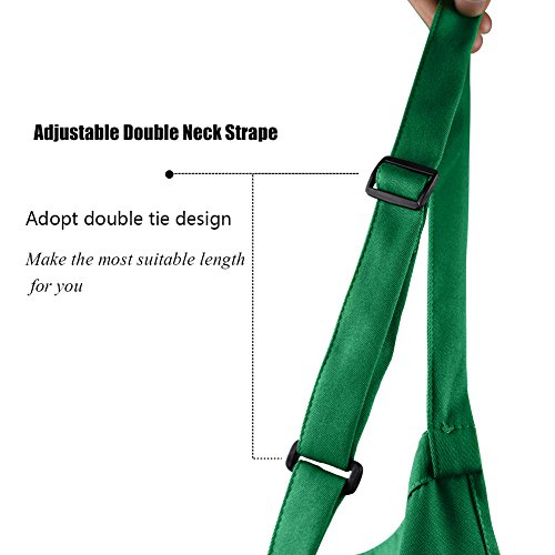 - HUMANIZED ADJUSTMENT BUCKLE: With an adjustable neck strap and 40 inch long ties that can wrap around and tied in the front, this apron can be easily altered to fit most sizes. Flexible hanging neck meets a variety of body wear.It can receive the shortest 38cm, the longest can be put into 72cm. We adopt double tie design to avoid loose neckline and injury of single line.