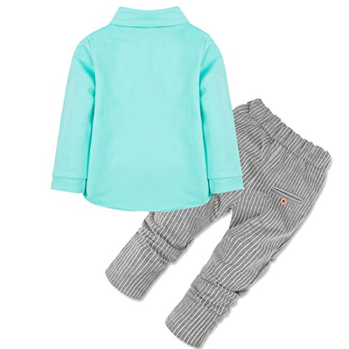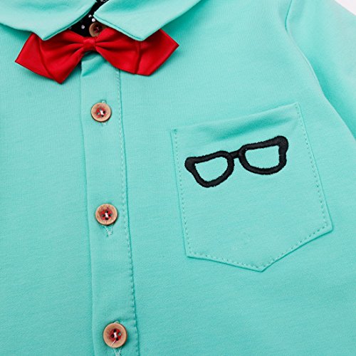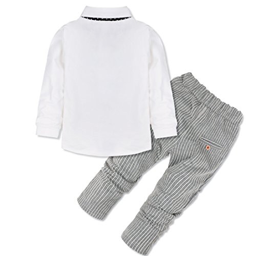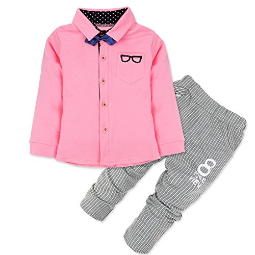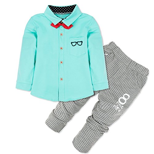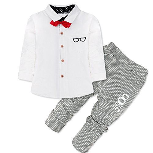 -. Binding : Apparel -. Brand : iiniim -. Department : baby-boys -. Feature : Long sleeve outfits with removable bowtie. / T-shirt with button closures for easy dressing. / A chest pocket with glasses pattern. / Striped pants with 2 pockets and P.R.Inted letters pattern. / Suitable for wedding, birthday, daily wear or other special occasions. -. ProductGroup : Apparel -. ProductTypeName : PANTS -. Title : iiniim Infant Toddler Baby Boys' Outfits T-shirt Striped Pants with Bowtie Set