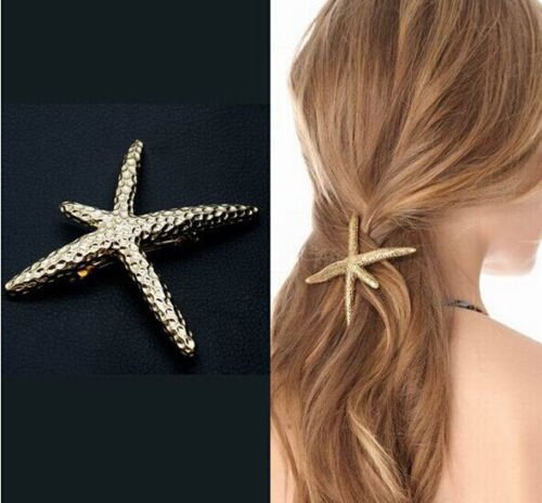 -. Feature : 1. Unique beautiful and stylish starfish hair clip that makes a fashion statement / 2. Fashion star shape women hair accessories, made of high quality metal / 3. High quality and charming female wedding and daily hair accessories / 4. Graceful all match women hairpin, hair clip size: 4.8 x 4 x 0.5 inches / 5. Perfect ponytail hair accessory, great gift for sea lovers. Pls note that the clip only shipped from USA, you can get it within 1-2 days by Ella FBA
