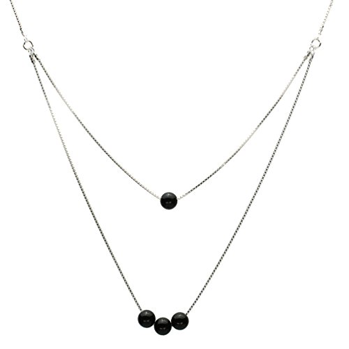 A single sterling silver box chain joins two box chains with suspended smooth, polished stone beads. A single 925 sterling silver lobster clasp and sterling silver extender chain for this one-to-two strand necklace make this necklace easy to wear. Sterling silver pieces imported from Italy. The natural properties and composition of mined stones define the unique beauty of each piece. Stones may have been treated to improve stability, durability or appearance. Gift box or organza pouch included, color or style may vary.Feature