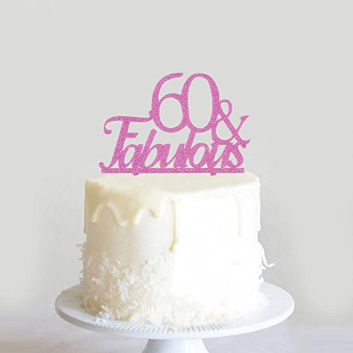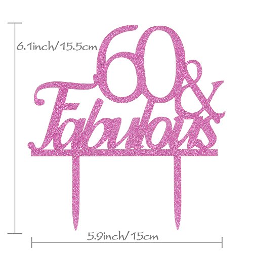 60 & Fabulous Birthday Cake Topper, 60th Wedding Anniversary Party Cupcake Topper Decoration (Purple)