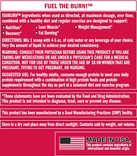 ISOBURN HighlightsSuggested Use As a dietary supplement For healthy adults, consume enough protein to meet your daily protein requirement with a combination of high protein foods and protein supplements throughout the day as part of a balanced diet and exercise program. - Or as directed by your healthcare professional.