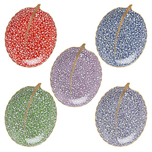 원본상품명: 有田? ?唐草 木の葉型銘?皿5個セット(赤/?/ピンク/?/紫) 13.5cm 有田製窯 ars1759