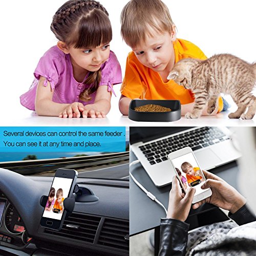 Feature: 1.Feeding Amount: Support 4 meals a day auto feeding, each meals up to 10 portions (each portion is about 10g).Without limitation of remote manual feeding times. 2.Statistic record and alarm reminder: The APP can record the feeding history including amount within 2 days and push failure alarm when no food or system glitch, keeping your pet a healthy eating habit. 3.More Humanistic: Good for taking care of your sick pets and keeping an eye on your naughty pets.You can communicate with your pets at any time, keep your pets away from loneliness when you are out of home. 4.Offline Feeding Model will continue distributing food based on your setting even if no Wifi.