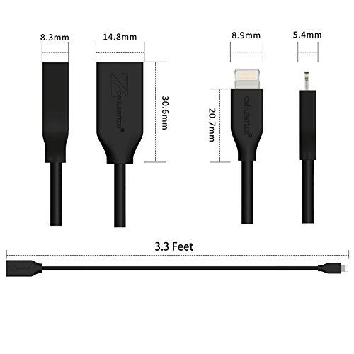 Lightning Cable Extension, (3.3FT/1M Black) Cellularize Lightning Extension Cable Extender for iPhone 6, 6S, Plus, 7; Pass Video, Data, Audio. Dock Connector Extender Extension Lightning Cable