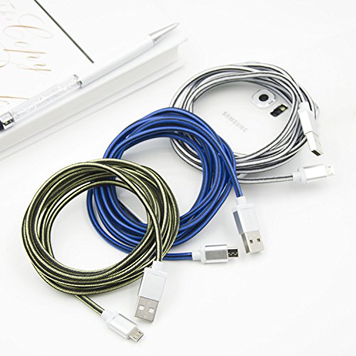 OKRAY 3 Pack 2M/6ft Extra Long Micro USB to USB Cables Charging and Sync Cords Charger for Android, Samsung galaxy S7 S6 S4, HTC, Motorola, Sony, LG, Google Nexus, Nokia and More (Gold White Blue)