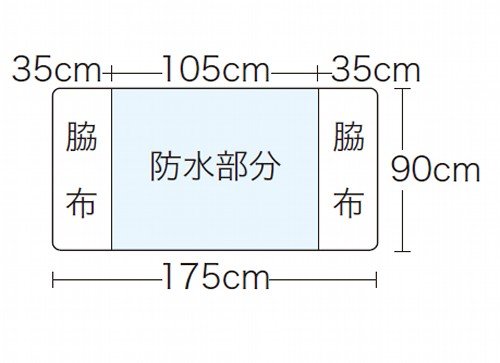 Waterproof part 105 cm * 90 cm + side cloth 35 cm * 2 places.