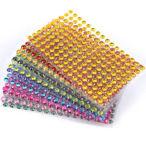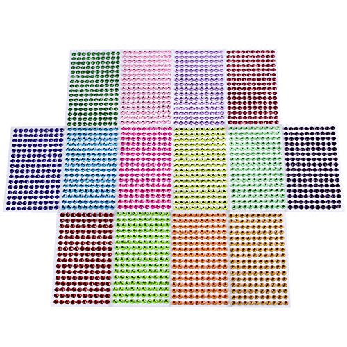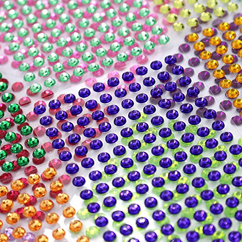 Md trade Multicolor Self-Adhesive Flatback Rhinestone Sticker Sheet ,Round 5mm, 14 Sheets
