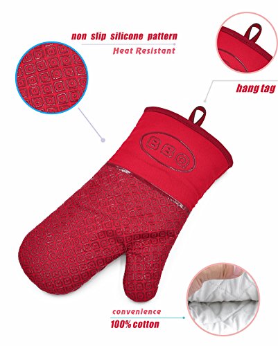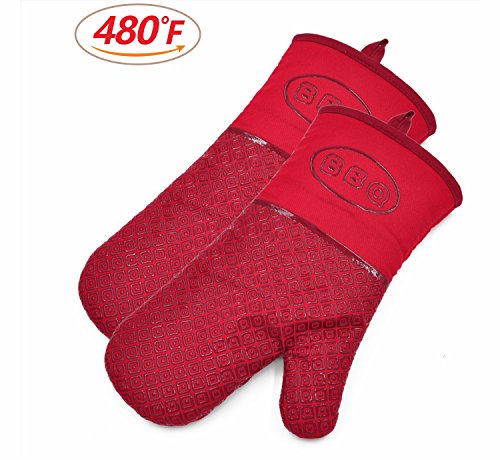 YUTAT Silicone Oven Mitts Heat Resistant 450 F Clip Pattern Cooking Gloves Non-Slip Potholders 1 Pair (Wine)