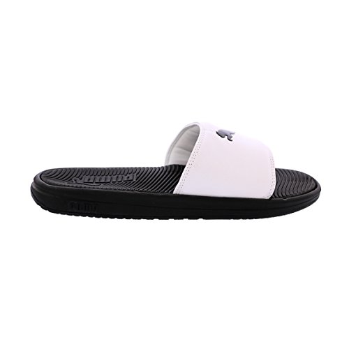 -. Binding : Apparel -. Brand : PUMA -. Department : mens -. Feature : Fashionable Sandals that give you and your feet the comfort all day long. / Slip-on design with classic embossed PUMA strap. / Extra-soft, water-resistant for quick-dry, textured, molded Puma embossed footbed offer incredible touch and comfort. -. ProductGroup : Shoes -. ProductTypeName : SHOES -. Title : Puma - Men's Slide Sandals - White/Black