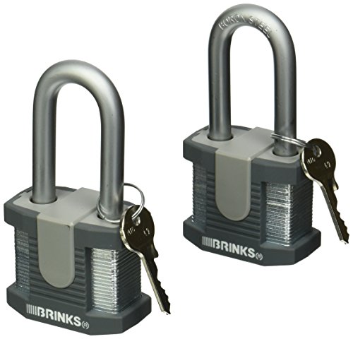 -. Title : Brinks Home Security Commercial 50MM Solid Steel Lock with 2" Boron Shackle - 2-Pack