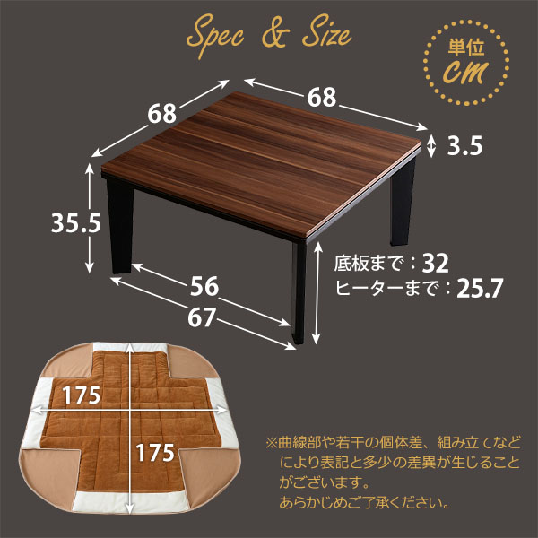 ●こたつ布団:側生地:表地、裏地・コーナー部:ポリエステル100% 詰め綿:ポリエステル100%(重量118g)