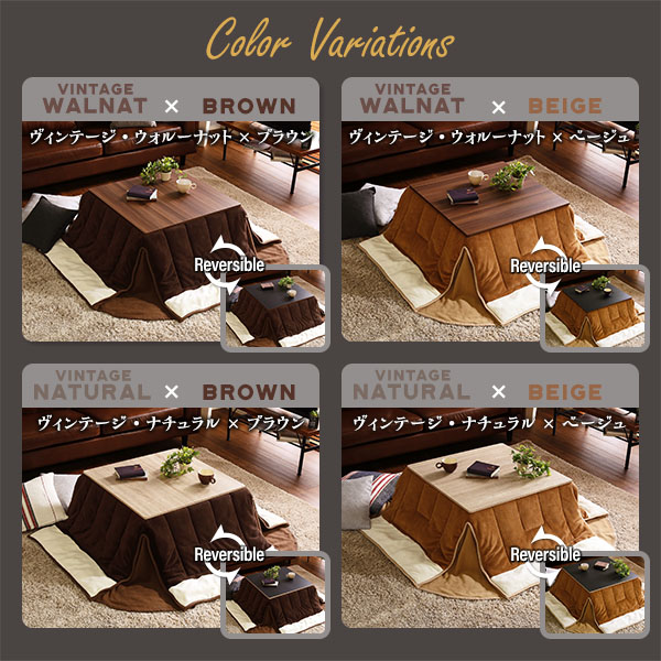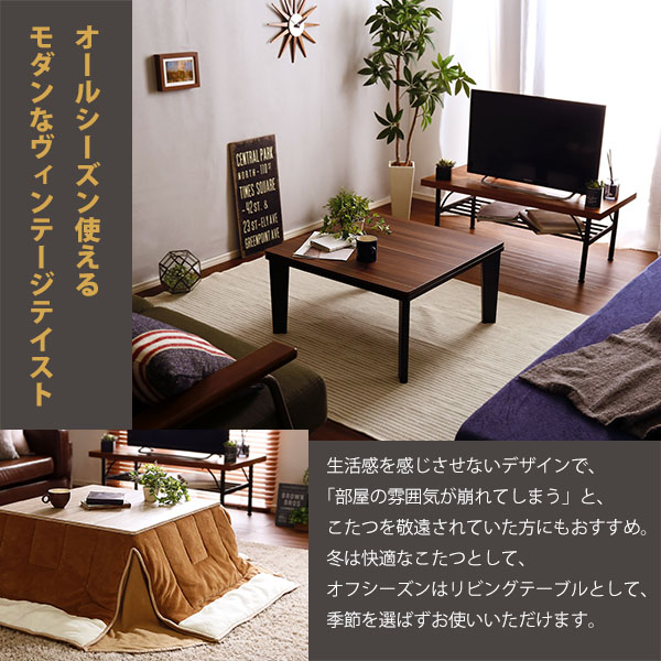 ●モダンなヴィンテージテイストのおしゃれなこたつとふわもこ布団のセットですぐに使える