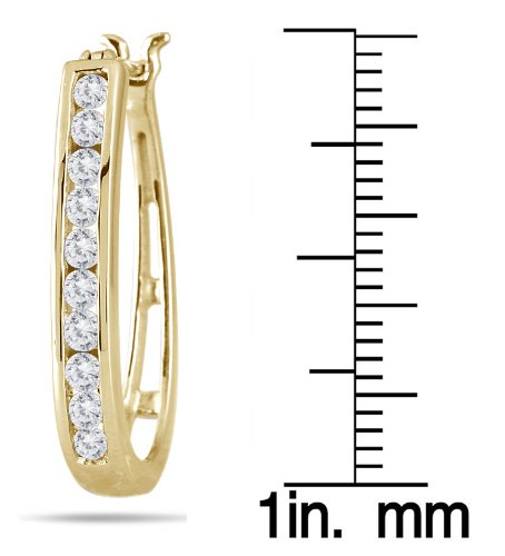 -. Title : AGS Certified 1 Carat TW Diamond Hoop Earrings in 10K Yellow Gold (K-L Color, I2-I3 Clarity)