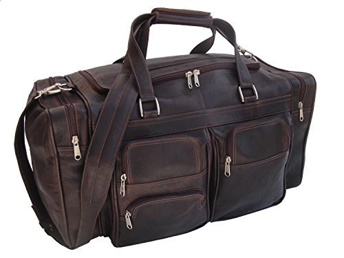 -. Brand : Piel Leather -. Color : Reg Chocolate -. Department : unisex-adult -. EAN : 0648260974527 -. Feature : Available in Black, Chocolate and Tan / U-zip opening to main compartment / Dimensions: 20 x 11 x 10. Weight: 4LB / Two side zip compartments / Three half moon front zip pockets -. MPN : 7720-CHC-PL -. PackageQuantity : 1 -. PartNumber : 7720-CHC-PL -. ProductGroup : Apparel -. ProductTypeName : LAGE -. Size : 20 x 11 x 10 -. Title : Piel Leather 20" Duffel Bag with Pockets in Chocolate -. UPC : 648260974527