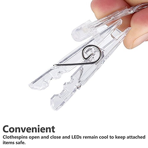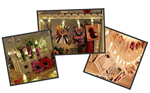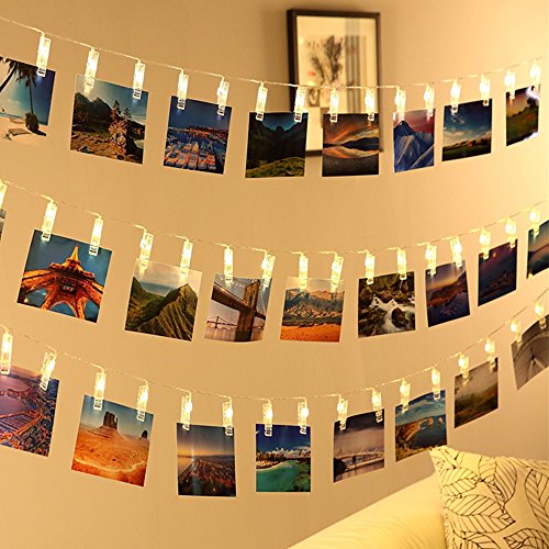 - CREATE A WARM AND INVITING AMBIANCE : These led photo string lights emit a cozy warm white light and radiantly illuminate pictures adding a touch of elegance and ambiance in your home. Ideal for hanging photos, artworks, light weight item display and more. Perfect lighting decoration for living room, dormitories, galleries and birthday, festival and other special celebrations.