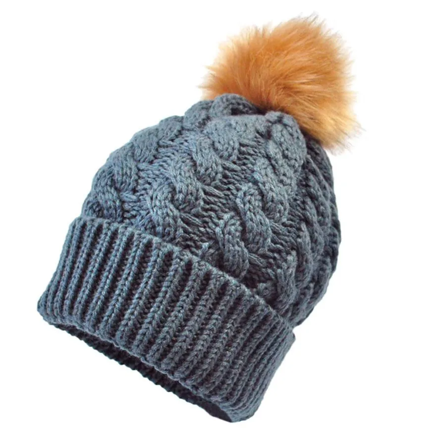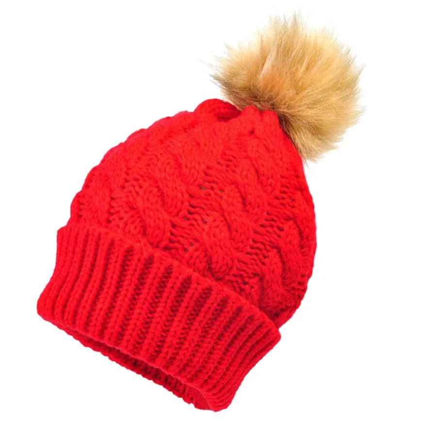 2017 Pom Children Winter Hat For Girls Boys Kids Newborn Knitted Cap Crochet Solid Children Beanies 0-36 Month Baby Fur Ball Cap