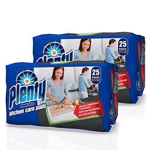The CDC indicates that each year roughly 48 million people, 1 in 6 Americans, get sick by consuming contaminated foods or beverages. Plenty kitchen care pads are designed to help protect you and your family from food borne illnesses by absorbing the juices from raw meats, not allowing them to cross contaminate your counters or other foods. When preparing food, simply place a small or medium cutting board on top of the kitchen care pad and any juices that roll off the cutting board will be absorbed by the pad and protect your counters and your family. Each durable and disposable pad measures 17 inches wide by 24 inches long and provides a large surface area of kitchen counter protection while you work. These can also be used without a cutting board to place food on while keeping your food and counters clean and protected. When finished, simply place the pad in the garbage; no need to clean and sanitize your counter, thanks to the minimal mess you've created. Plenty kitchen care pads can also be used as a drying mat for fruits, vegetables, and kitchen utensils. They are also great for lots of non-kitchen activities, including gardening, arts and crafts, picnics, camping, hunting, as a floor mat for muddy shoes or other messy activities such as changing your car oil. Plenty kitchen care pads are manufactured in Pennsylvania with attention to quality, safety, sustainability and responsible sourcing practices by First Quality, a family-owned company. First Quality is a leader in developing premium quality products at a great value.