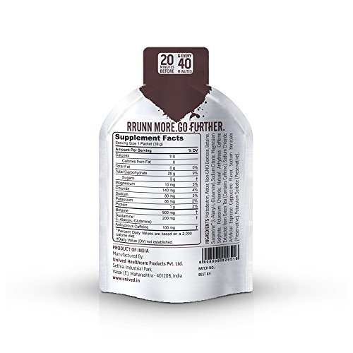 -. Title : Unived RRUNN Endurance Gel Espresso Cappuccino, Caffeinated (100mg Caffeine) Nutrition Energy Gel for Endurance Athletes, Runners, Cyclists, Triathletes, UltraMarathon Runners, Vegan