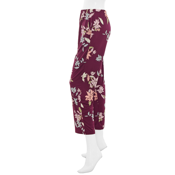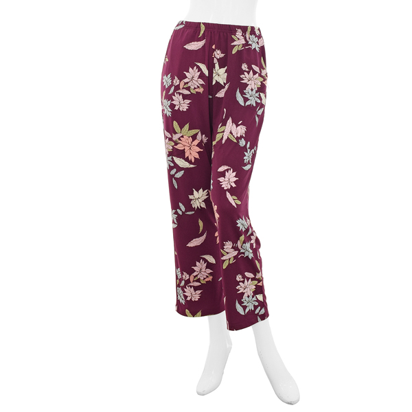 와인컬러에 화사한 컬러감의 플라워프린트 제품으로 화사한 실내복을 찾는 중장년층 분들에게 추천드리는 제품입니다.