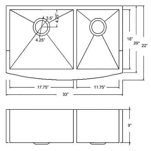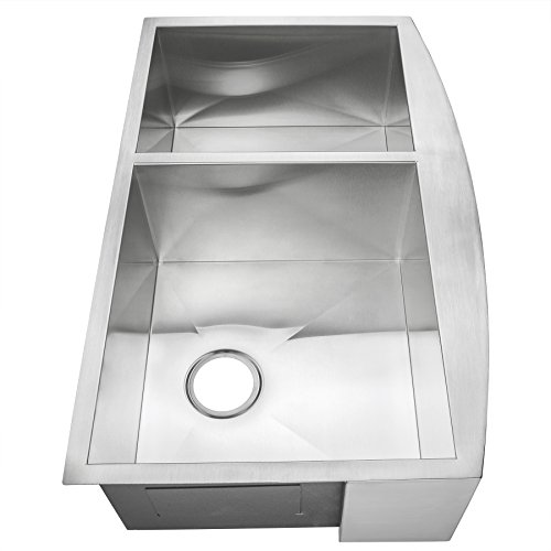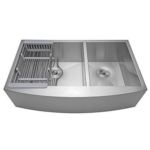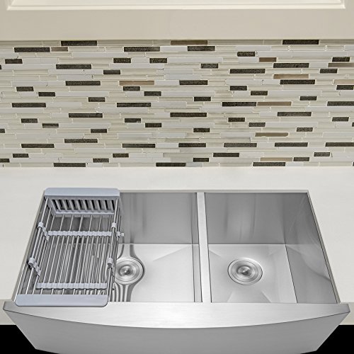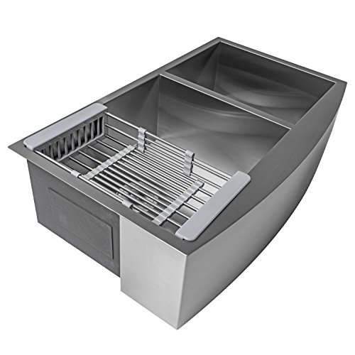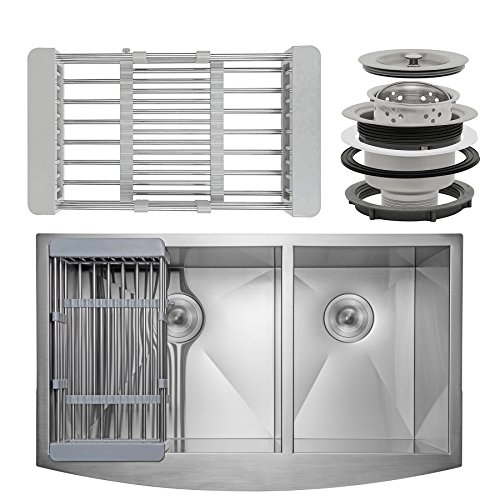 Firebird 33" x 22" x 9" Apron Farmhouse Handmade Stainless Steel Double Bowl 60/40 Kitchen Sink w/ Drain Strainer Kit Adjustable Tray