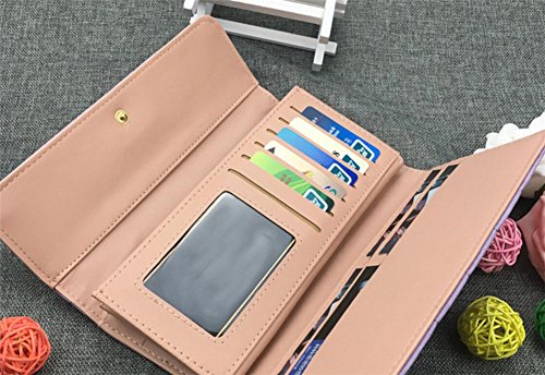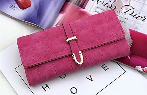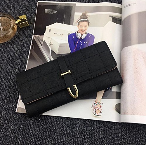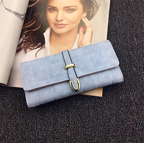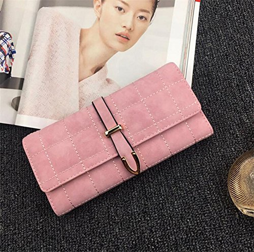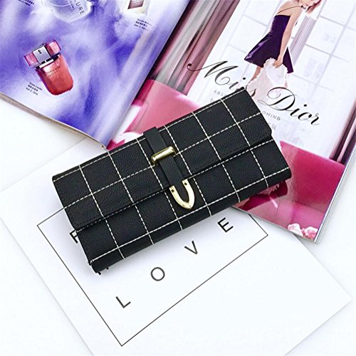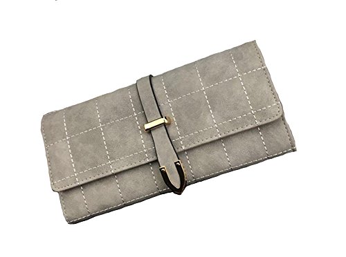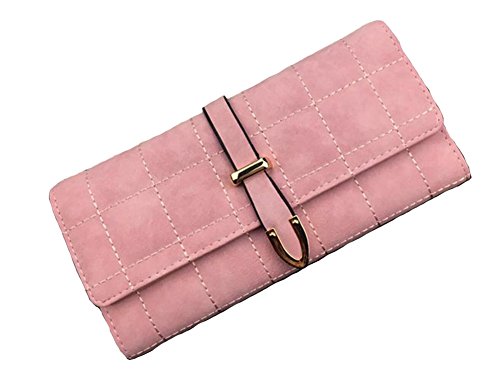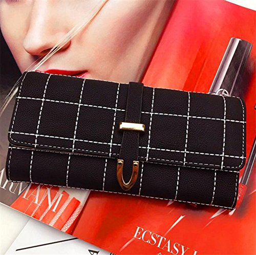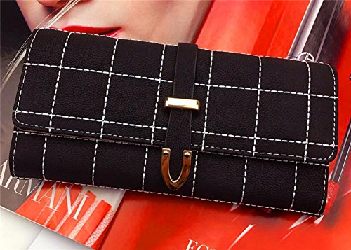 | (ZYZF)/Accessories/Wallets, Money Key Organizers/DIRECT FROM USA/ZYZF Women's PU Matte Leather Lattice Trifold Clutch Long Card Organizer Snap Closure Wallet |