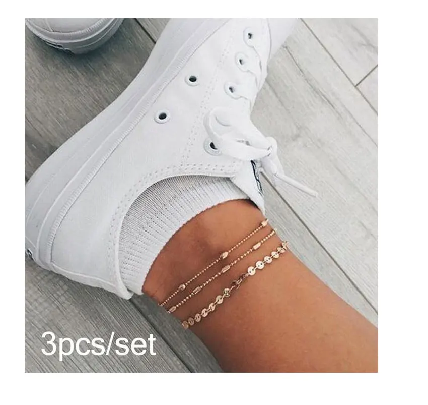 Name:Gold Coin Ankle Bracelet For Women Beads Chain Anklet