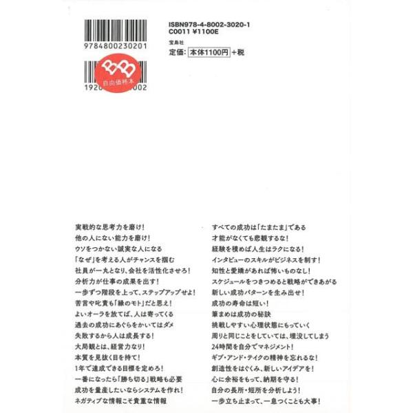【商品説明】 定価(税込み):1,188円 値引き:10% OFF 成功パターンを確立して好成績を挙げ続けよ!経営の神様が教える仕事で成功する40の鉄則「自分で自分を成長させられる人」は、いくらでも収入を伸ばすことができる。 バーゲンブック 新品 特価 格安 ビジネス 経済 スキル 経営 |