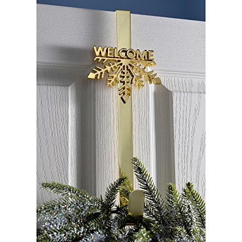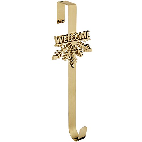 WeRChristmas Welcome Snowflake Wreath Door Hook Christmas Decoration, 37.5 Cm - Gold
