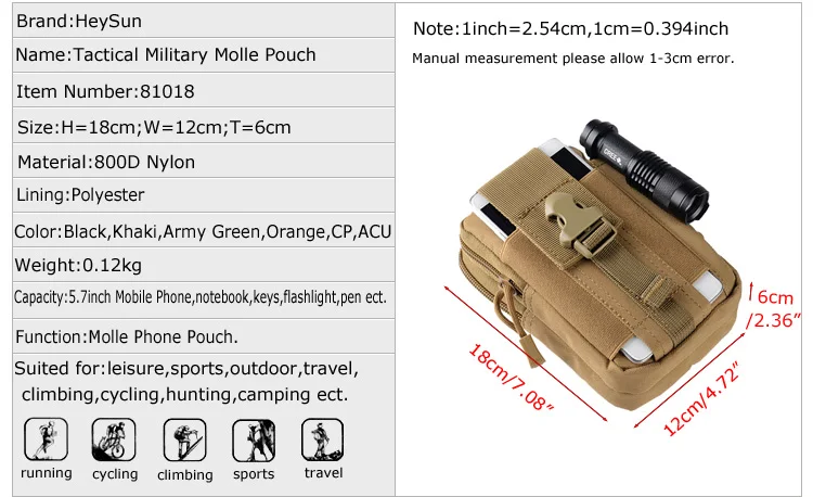 800D Nylon Military Tactical Pouch,Outdoor Molle Waist Belt Bag,5.7inch Universal Tactical Phone Pouch Mountain Outfit 6 Colors