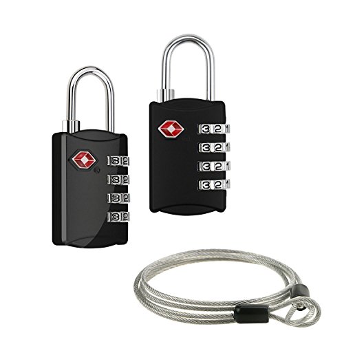 -. Title : Powangle 2個セット TSA鍵 南京錠 旅行用 安心 防犯グッズ アメリカ安全運送局認定 暗証番号 自転車鍵 ワイヤーロープ付き
