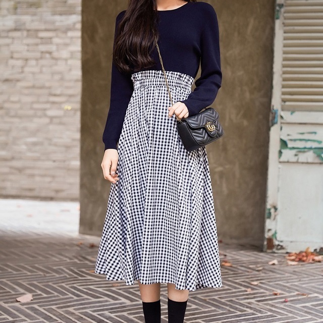 女の子らしい細かなギンガムチェックとウエストのフリルが可愛いポイント!