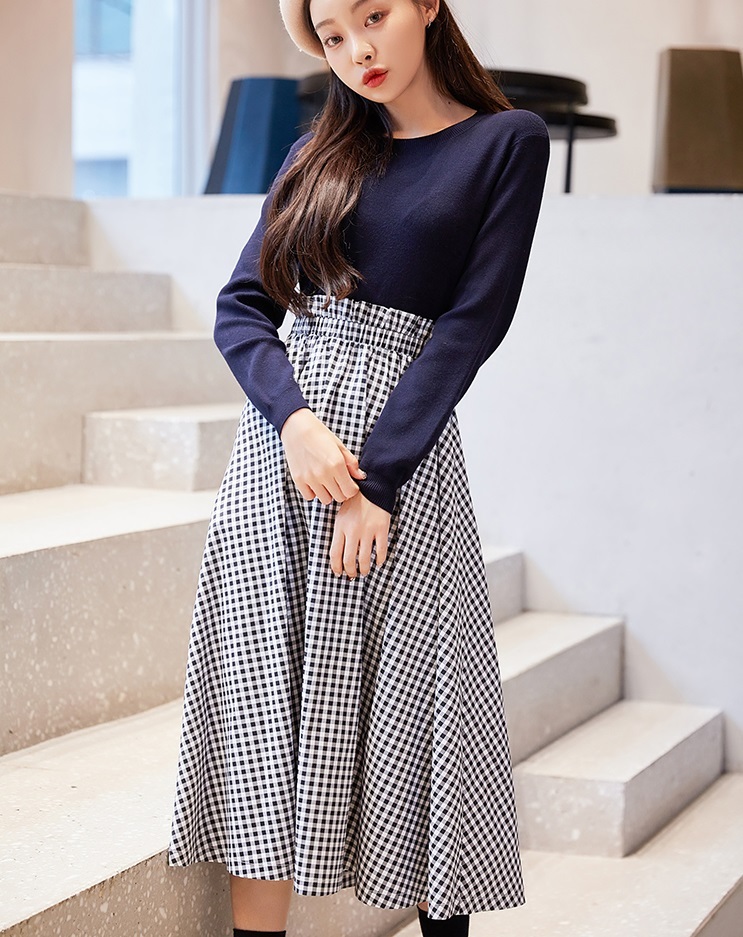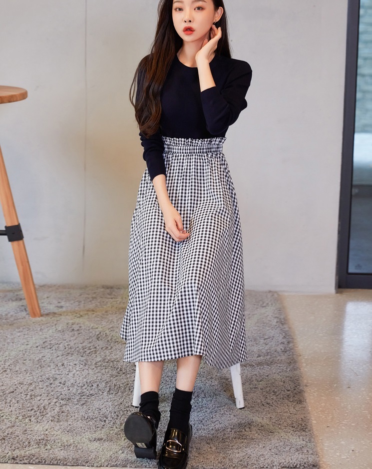 トップス部分はニット素材で高見えする1枚です☆