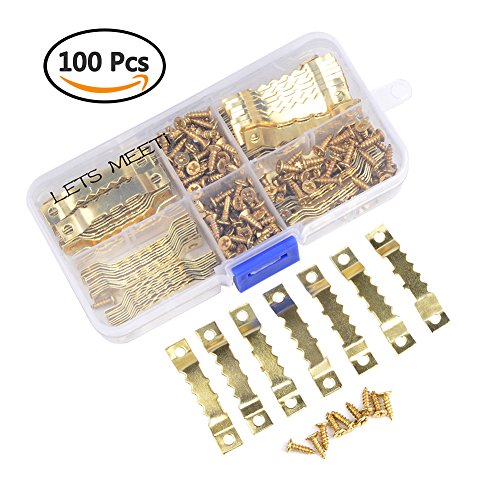 LETS MEETi 100 Pieces Golden Sawtooth Picture Hangers, Heavy Duty Photo Frame Hanging Kits Double Hole with Screws for Home Decoration Creative Picture Frame Hanging