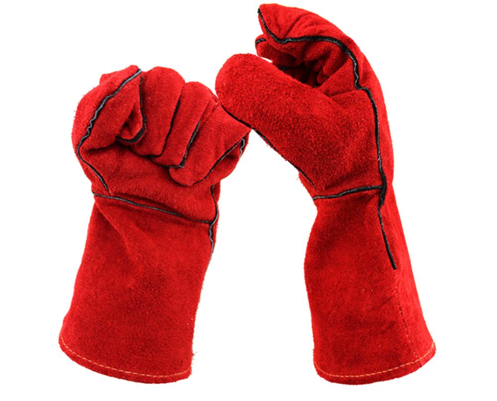 アウトドア BBQ 耐熱 本革 レザー グローブ 赤無地ctr-613【1~2日発送】