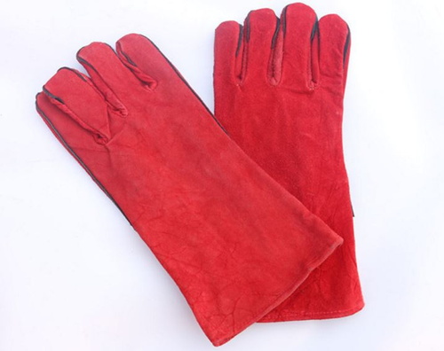 スエード調牛革グローブで、熱に強く手首まで覆い安全に作業ができます。
