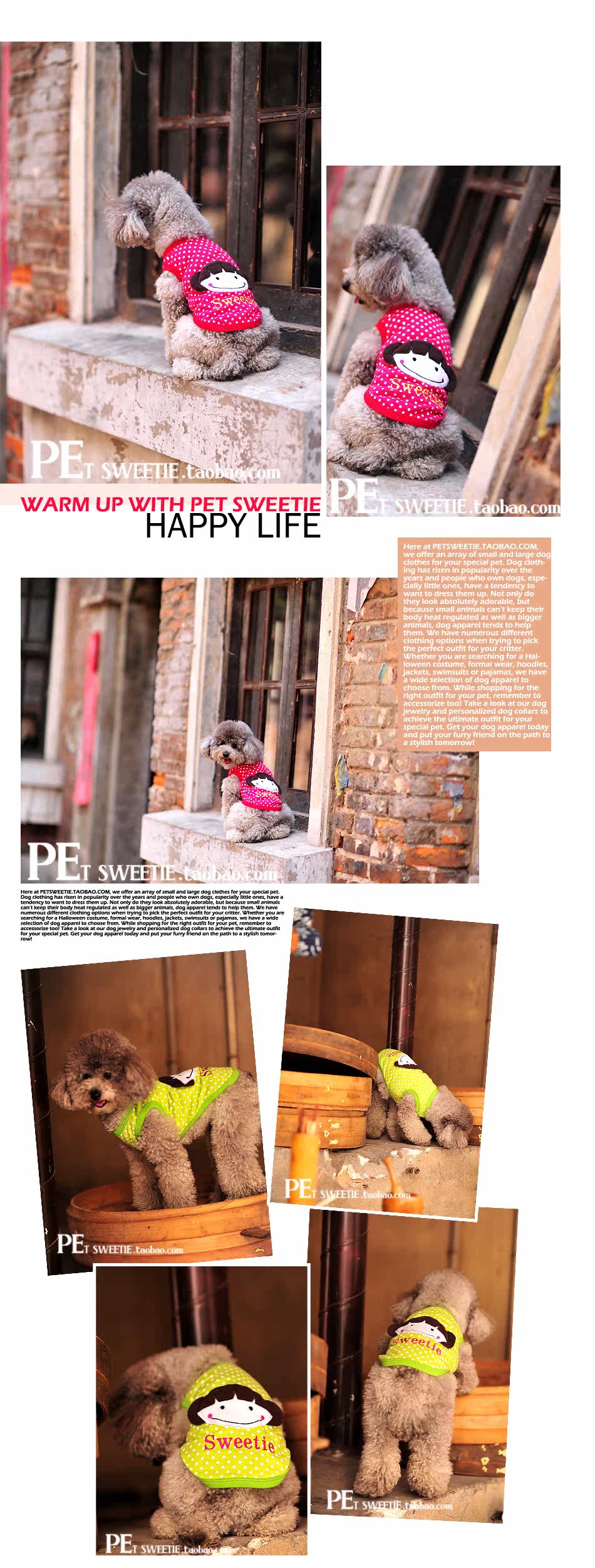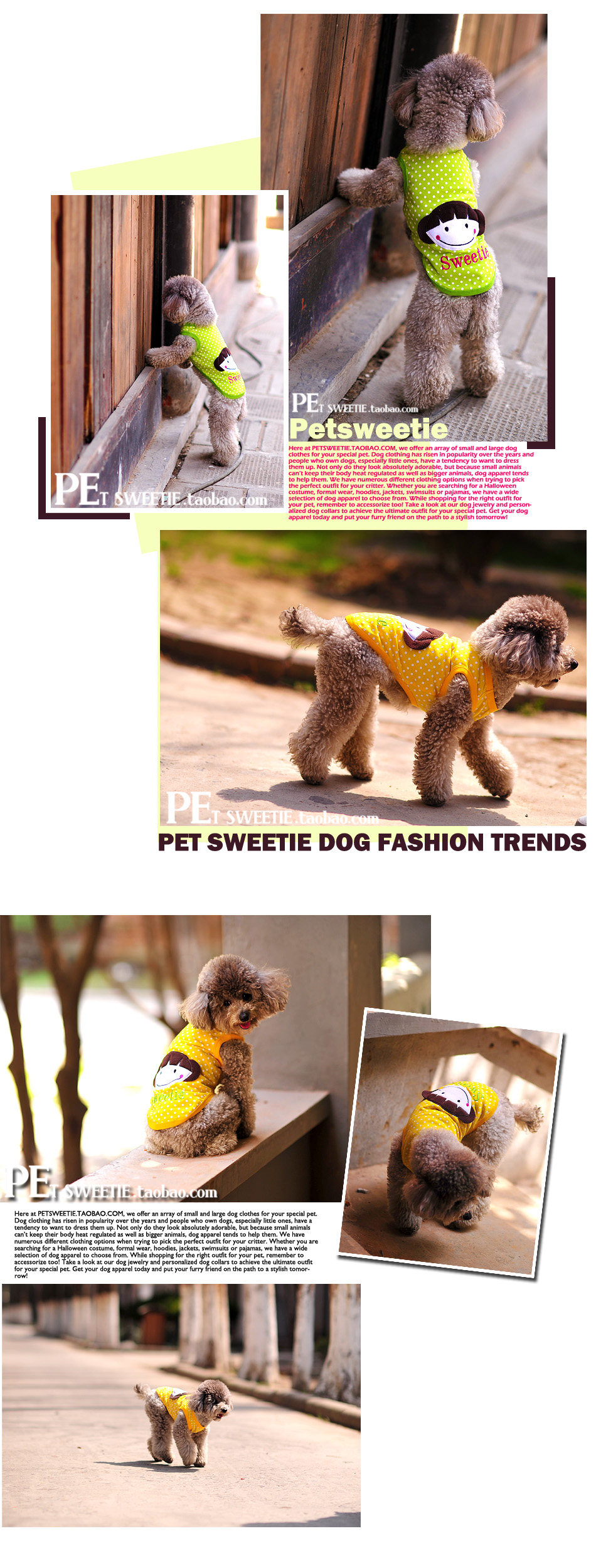 petsweetie家今夏又一独家设计款式,非常的舒适清凉,颜色鲜艳可爱,设计这款衣服的灵感来自于童年的记忆,娃娃头扎2个小辫子到处招摇,光着脚丫和小伙伴一起玩探险游戏,经常因为游戏而忘记了回家吃饭,很美好的一款衣服,如同我的童年一样,让人觉得那么的舒服和幸福!