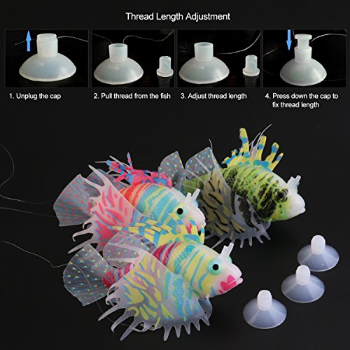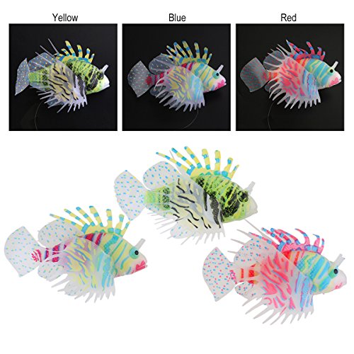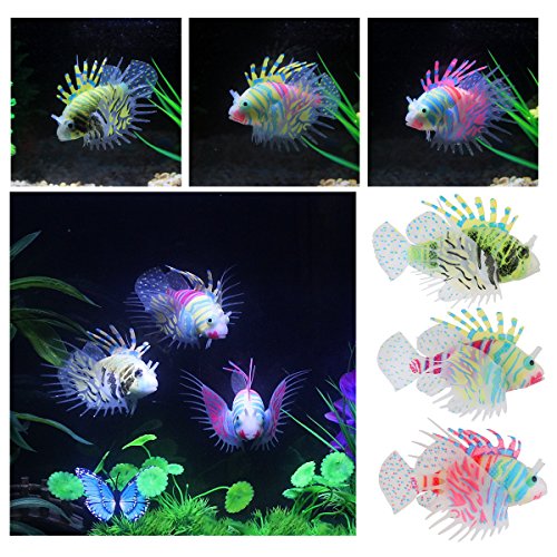 UEETEK 3pcs Aquarium Artificial Silicone Fish Decorations, Glowing Ornament Gloating Fake Lionfish for Fish Tank