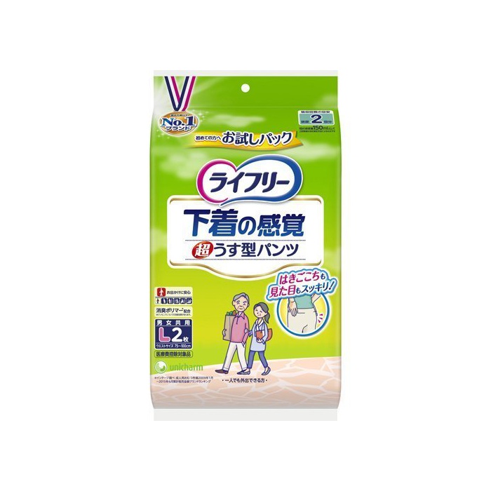 원본상품명: 【お試しパック】 ライフリ? パンツタイプ 下着の感?超うす型パンツ Lサイズ 2枚 2回吸? 【一人で外出できる方】【下着のようなはき心地】