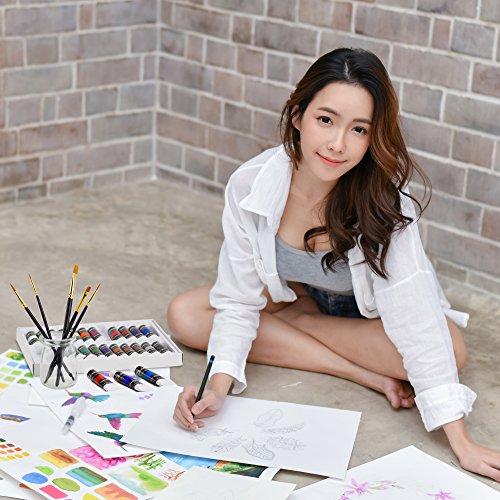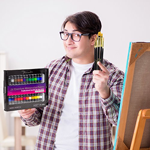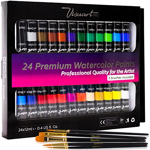 - 24 WATERCOLOR PAINT TUBES - ENDLESS CRAFT ENJOYMENT – Adults, beginners, student, professional artist and children alike love the results from this watercolor paint set, with this premium set you have everything you need to create delicate blended artwork at home. Includes 5 artists paint brushes.
