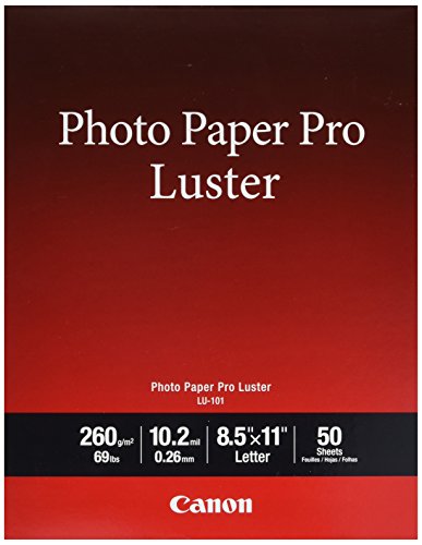 Canon Pro Luster Inkjet Photo Paper, 8.5-Inch X 11-Inch, White, 50 Sheets/Pack