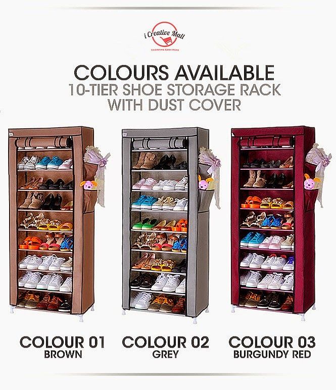 The best part about the Stackable Shoe Cabinet 10 Tier 9 Column Shoe Rack is it is covered, this will protect the shoes from the outdoor environments or protect your home from any unwanted odours caused by the shoes stacked on it. It’s zippered to further trap any odors and to prevent your cats or dogs from sleeping on your shoes.