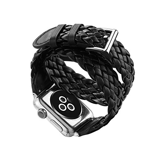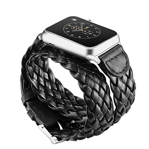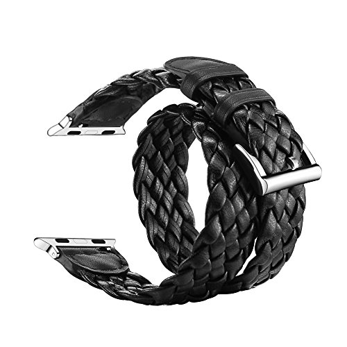 LoveBlue For Apple Watch Band, Double Single Tour Apple Watch PU Leather Band, PU Leather Band Bracelet Wrist Watch Band with Adapter for Apple Watch Series 2/Series 1 (Double Weave Black-42mm)