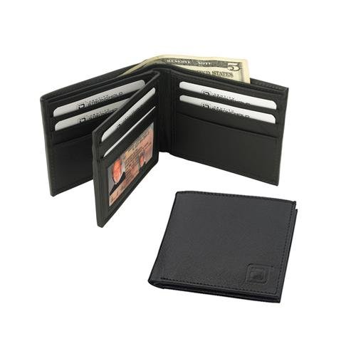 -. Feature : 10 card slots - Bi-Fold / Divided billfold / Color: Black/ 3.5 inches x 4.5 inches x 0.75 inches/ Weight: 2.7 Oz / Transparent ID slot (as pictured) / Every single pocket on every single wallet is entirely shielded individually, locking your personal information safely inside.